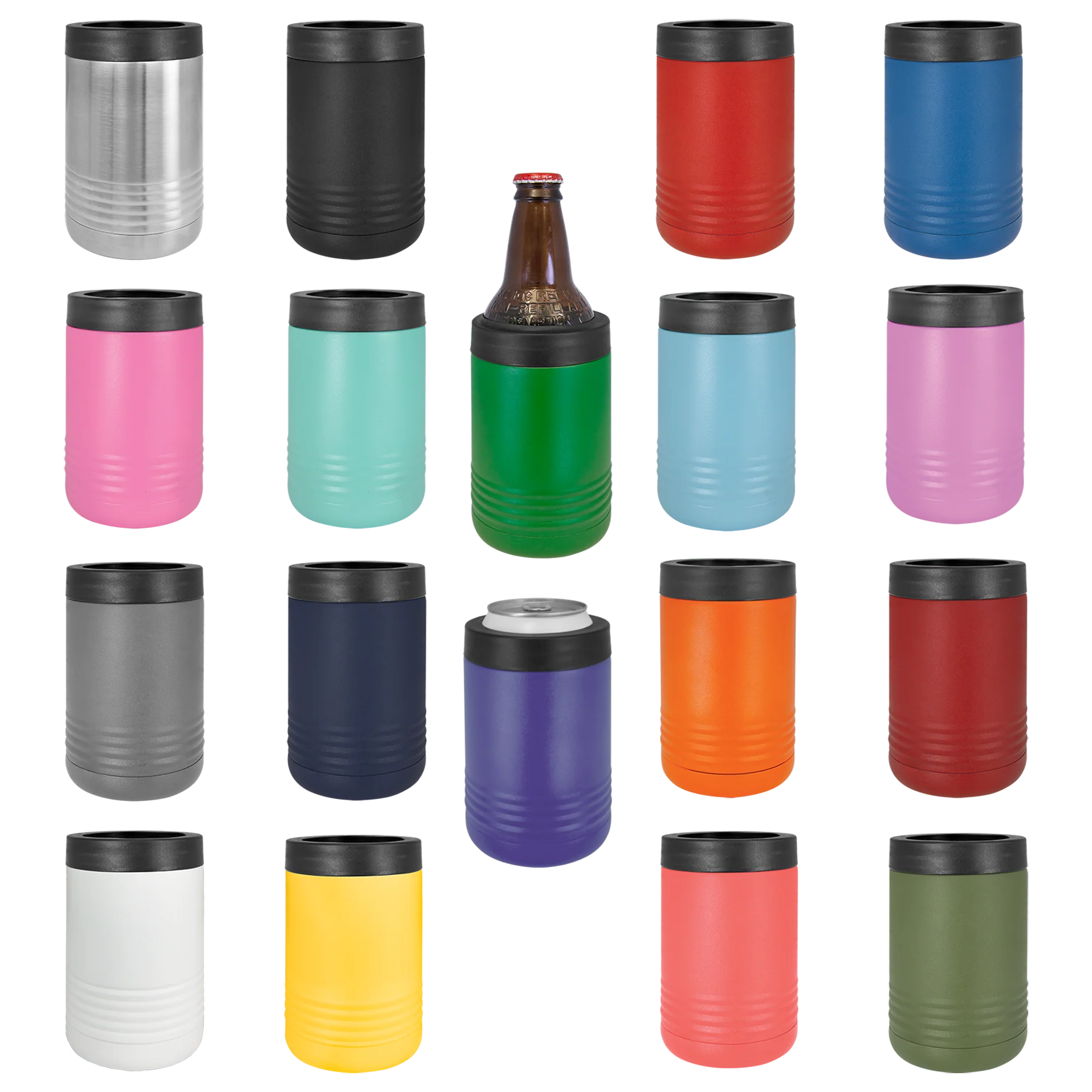 Stainless Steel Polar Camel Beverage Holderss feature double-wall, vacuum insulation. They are heat and cold resistant and hold cans and bottles. Simply screw off the rubber top and place the beverage inside. Holds a 12 or 16 oz. can or a 12 oz. bottle.